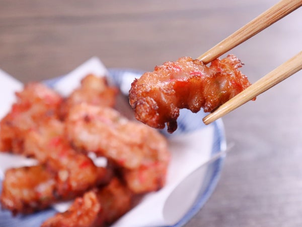 揚げ色が付きやすいので、油温や揚げすぎにご注意ください。