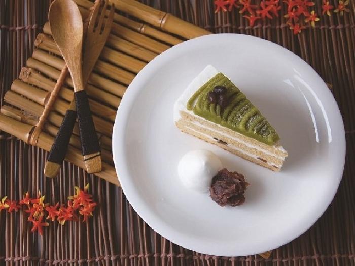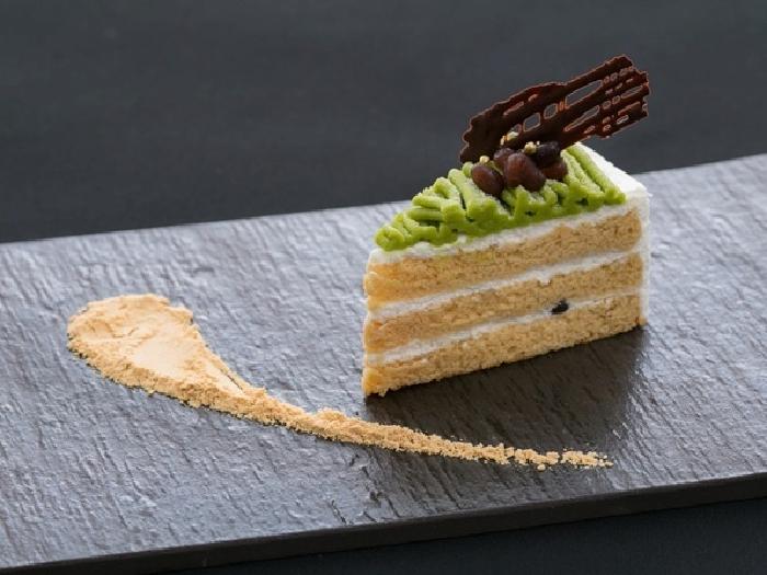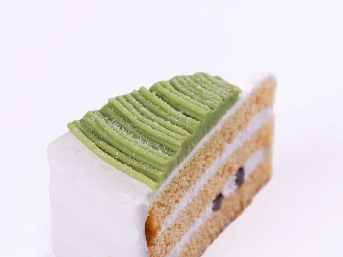 ふんわり香るきな粉スポンジに北海道産小豆をサンドし、たっぷりの抹茶クリームで仕上げました。和を感じるケーキです。