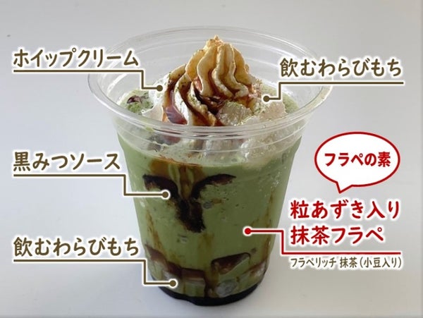 フラペの素「フラペリッチ」は、独自の製氷技術で作った微細な味付きかき氷です。牛乳を混ぜるだけで簡単にコクのある抹茶味のフローズンドリンクが作れます。抹茶のかき氷にぴったりのあずき入りです。