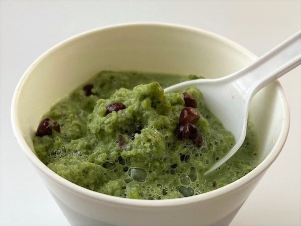 かき氷と相性のいい深みのある抹茶味の氷です。そのまま食べてもおいしい!