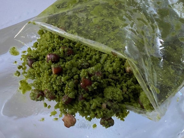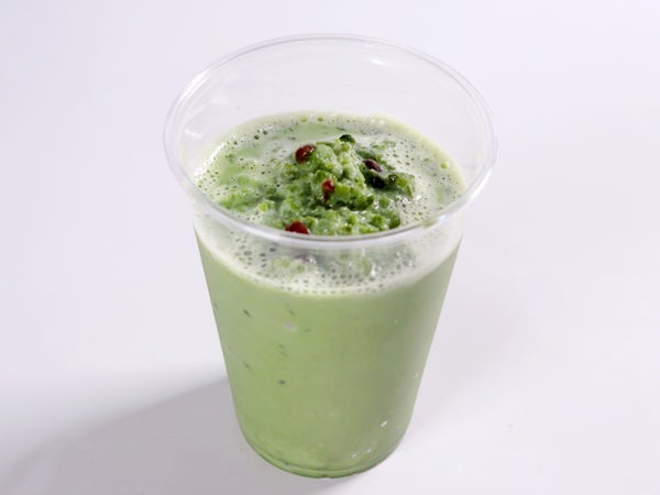 味の付いた氷塊を細かく削ったフローズンドリンク用の氷です。あらかじめ細かく削った氷を個包装しているので、ブレンダーマシンを使わず牛乳を混ぜるだけで簡単に本格的な抹茶味のフローズンドリンクが作れます。抹茶と相性の良い小豆入りです。