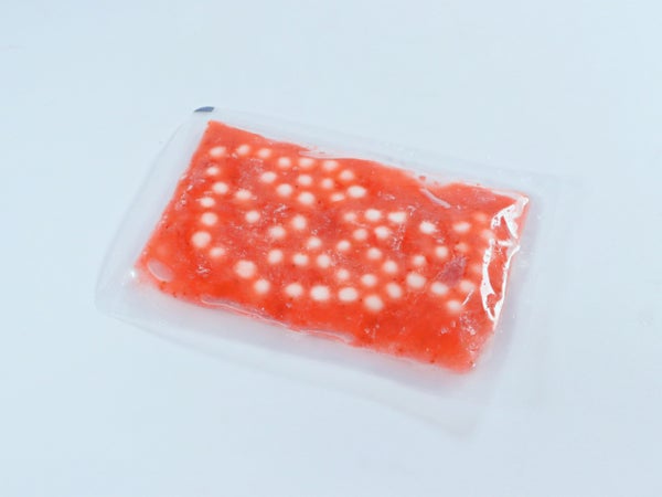 冷凍のまま袋ごと約3分湯せんするか、レンジで加熱し(500Wなら1分~1分30秒ほど)、牛乳約120ccと氷を加えてください。