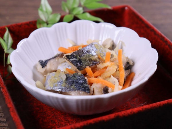 ほぐした粒々の数の子卵、にんじん、しょうがでさっぱりとした酢の物に仕上げています。