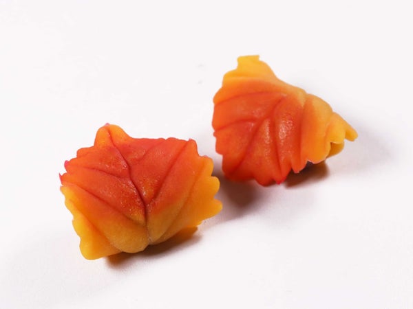美しい葉脈をつけた紅葉色のお菓子です。