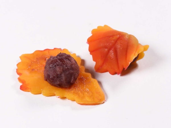 独自の技術で木の葉の形状を忠実に再現し、スプレーでリアルな着色を施しました。自家製の北海小豆あんは風味も高く、見た目も味も上品な和菓子です。