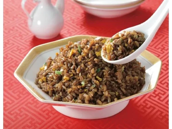 黒マー油・辛みとコクが特徴の熟成豆板醤、二弾仕込み醤油を使用し香り・色目・味が本格的なやや濃いめの炒飯です。あと引く旨さで、止まらなくなります。