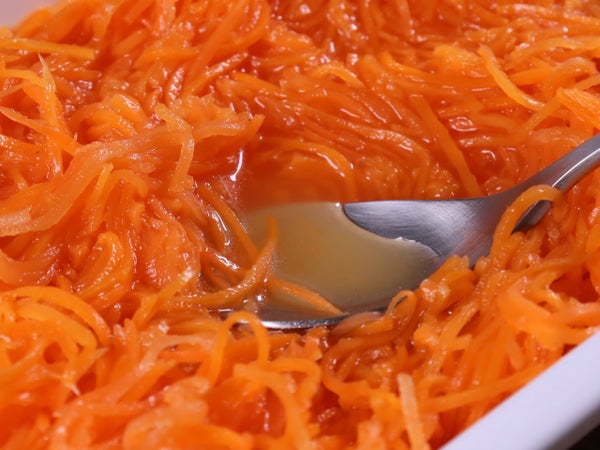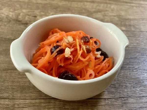 約1.5mm幅で細切りにしたにんじんを、りんご酢がベースの調味液でやさしい味わいのラペに仕立てました。ハーブ・ナッツ・ドライフルーツ等を加え、お店にあったオリジナルのサラダが簡単に作れます。