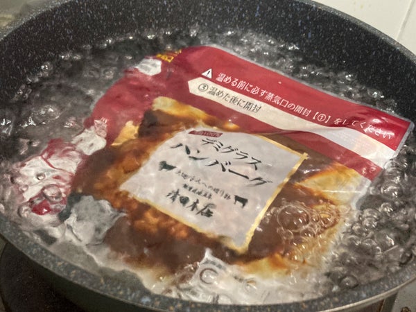 冷凍のまま、約15分間湯煎してください。または電子レンジで約6分(500W)加熱してください。
