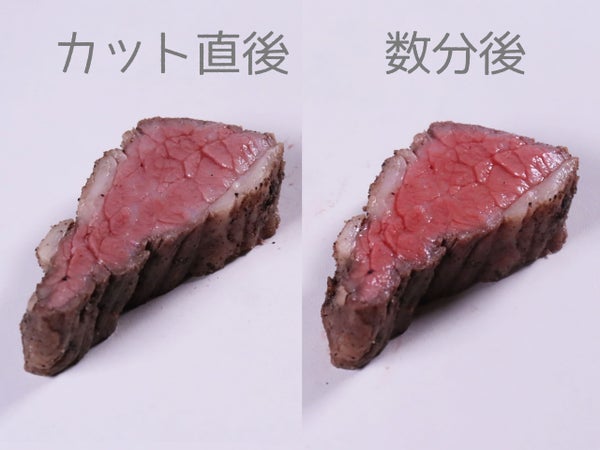 切ってから空気に触れることで発色が進みます。解凍から時間がたつと発色が悪くなることがありますのでお早めにご使用ください。