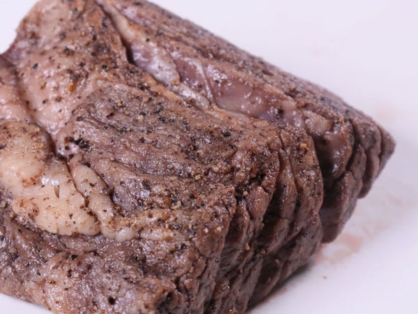 表面は粗挽き胡椒。味付けはほぼ塩こしょうのみ、肉のうまみだけでおいしく仕上げてあります。