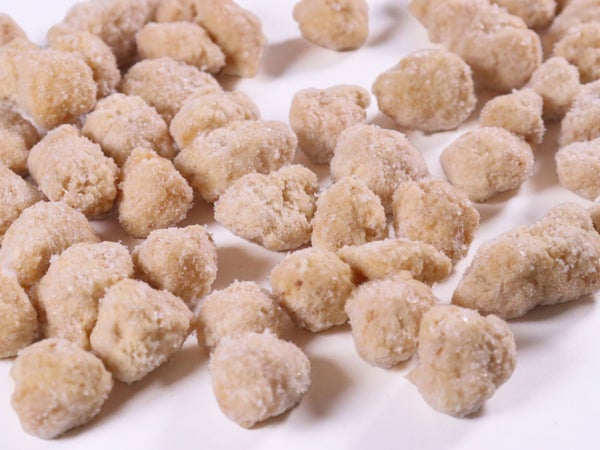 鶏のしっぽ(ぼんじり)をカットして、唐揚げ粉をつけてあります。大きさは1.5~2cm程度。