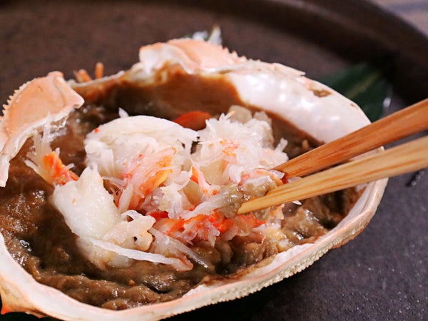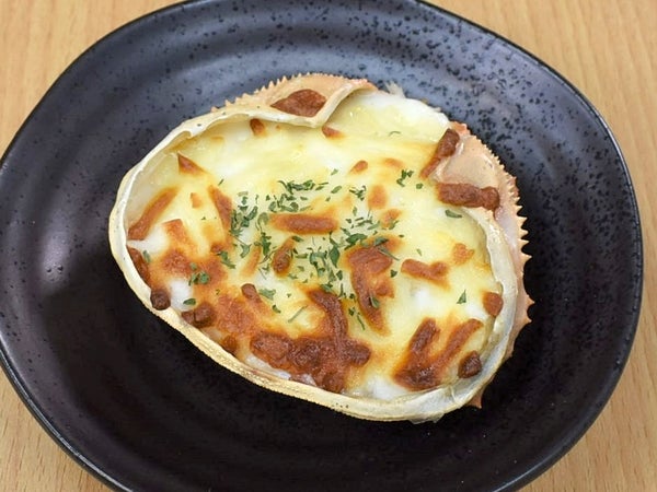 濃厚仕立てのかにみそとたっぷりのかに身を甲羅盛にしました。見栄えのする豪華な一品です。