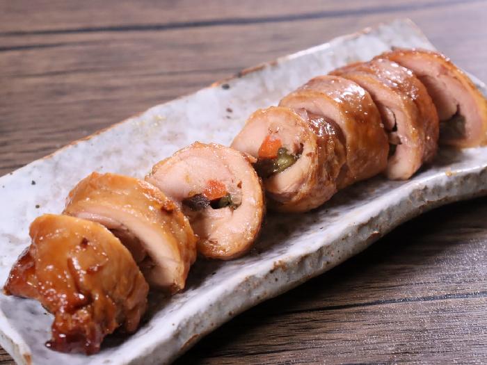 自然な成形にとどめ、加熱による肉のちぢれによって、手作りのような仕上がりになっているチキン巻きです。