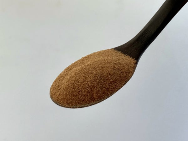 微細なパウダー状。アイスやホイップの上からかけたり、パンケーキの生地に混ぜ込んだりすることもできます。