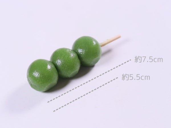かわいい3つ玉の串団子。抹茶のミニだんごです(よもぎではありません)。