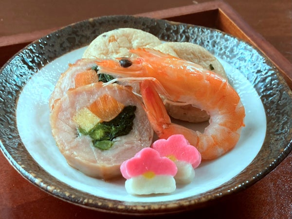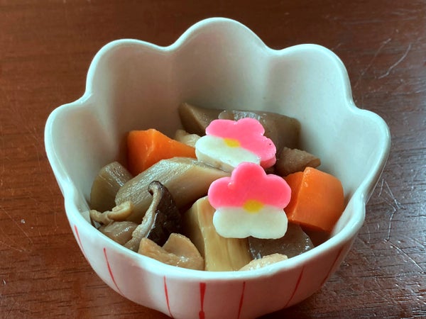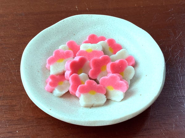 梅の花をかたどった生麩スライス。直径2cmほど。