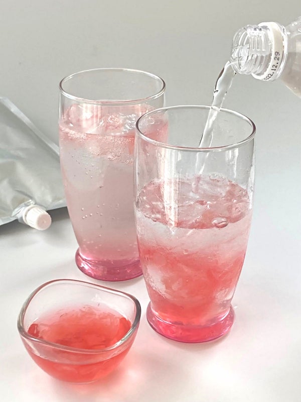 水飴(国内製造)、砂糖、桜の花エキス、塩漬け桜の花びら/ゲル化剤(増粘多糖類)、pH調整剤、香料、野菜色素、カルミン酸色素