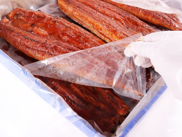 粘性の高いたれをつけてあるのは、保存中の外気からうなぎを守る効果もあります。焼く場合、適宜たれを拭って焼くとパリッと仕上がります。