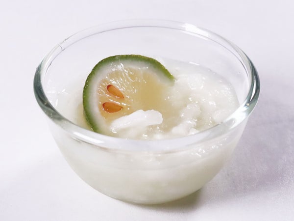 解凍後カップに入れてください。冷凍のままでもほどなく解けますが、レモンスライスにシロップが凍り付いていることがあります。