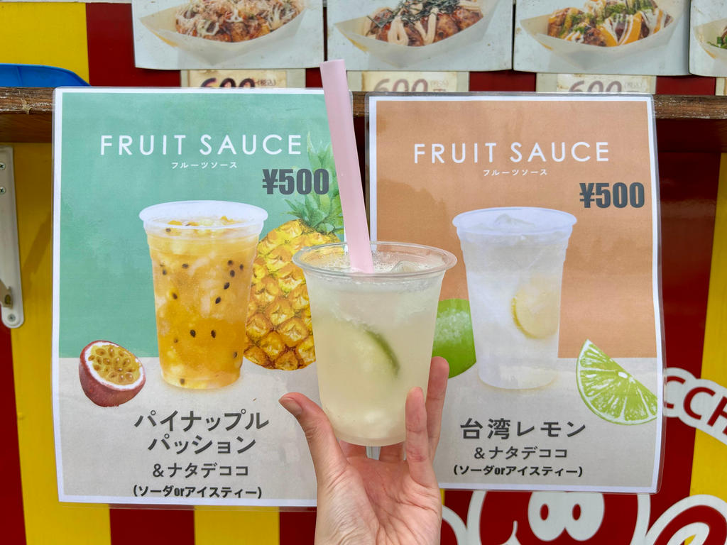 果実感たっぷりのナタデココドリンク。ソーダ割以外のおすすめは、ジャスミンティー・抹茶・サイダー・レモンサワー(アルコール)。