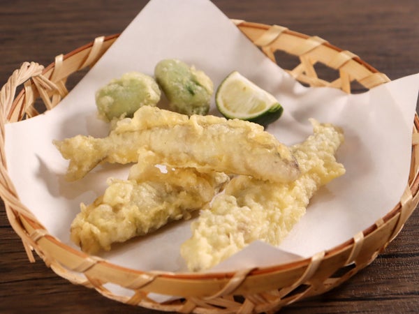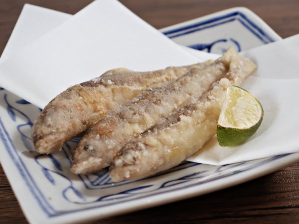 岐阜県長良川伏流水で育った稚鮎に粉付けをしました。骨が柔らかく、鮎特有の爽やかな香りとほろ苦さが後を引きます。素揚げで唐揚げとして提供するほか、衣を付けて天ぷらにしてもおすすめです。