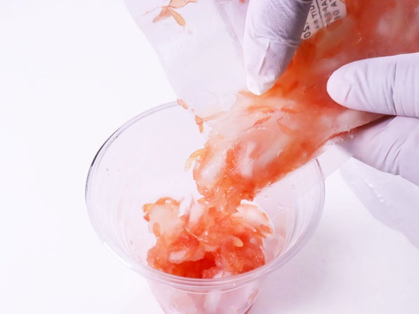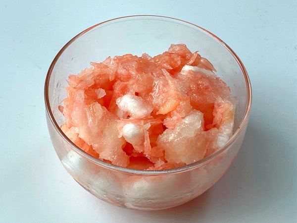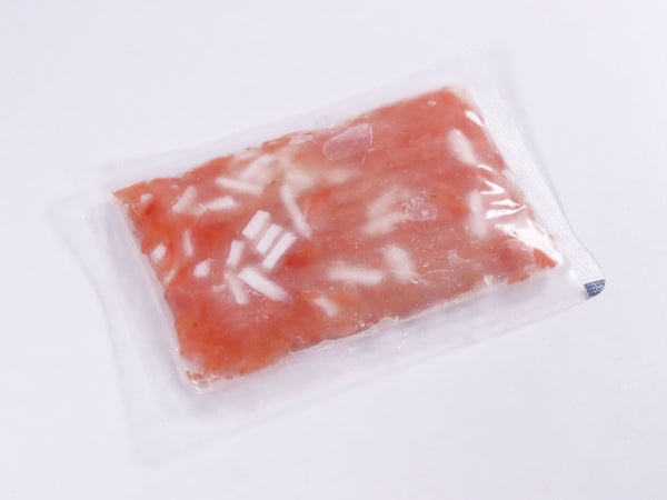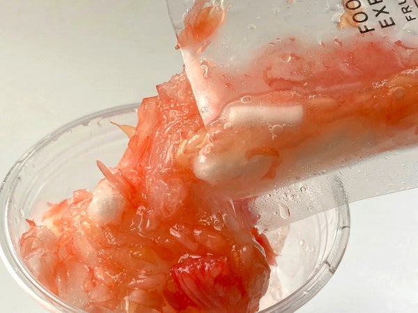 冷凍のまま、軽くもみほぐしてカップに入れてください。氷を加えるかはお好みで。