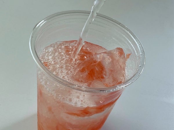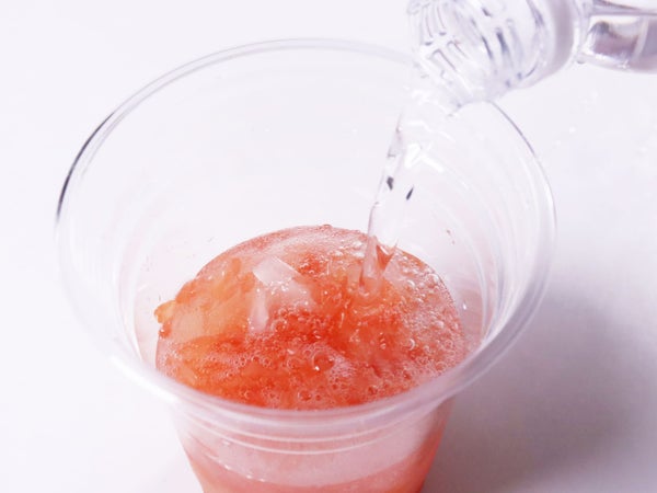 冷凍のまま、軽くほぐしてお好みのドリンク(紅茶・ジャスミン茶・炭酸水など)約180mlと氷を加えてください。