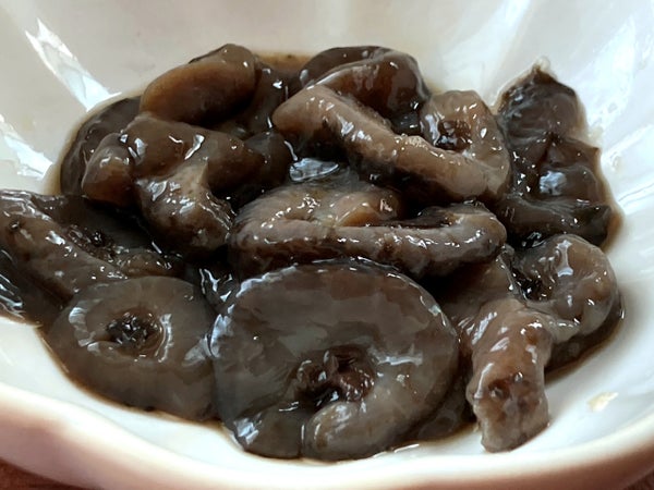 - ナマコの食感もしっかりあります。柚子風味のポン酢がしっかり入っているので、ほかの食材と和えても良いと思います。
