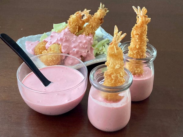アンダーソースやトッピングに使って、ピンク色の料理が作れます。