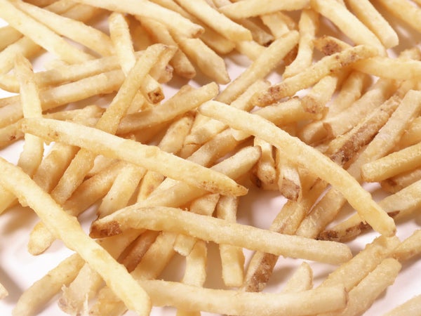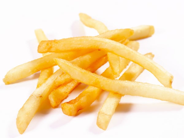 ファストフードで広く利用されている細めのフライドポテトです。皮あり。