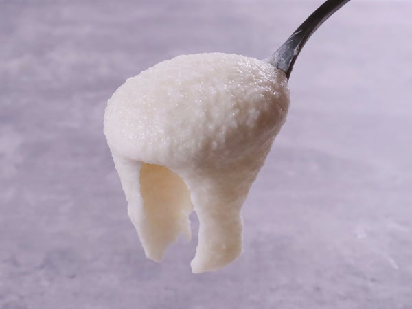 スプーンですくうと持ち上がって落ちないほどの粘りです。