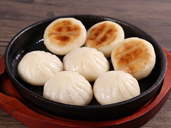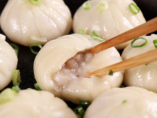 餃子と同じように、底に焼き目をつけてから蒸し焼きに。包あん後に蒸し加工してあるので扱いやすく失敗がありません。