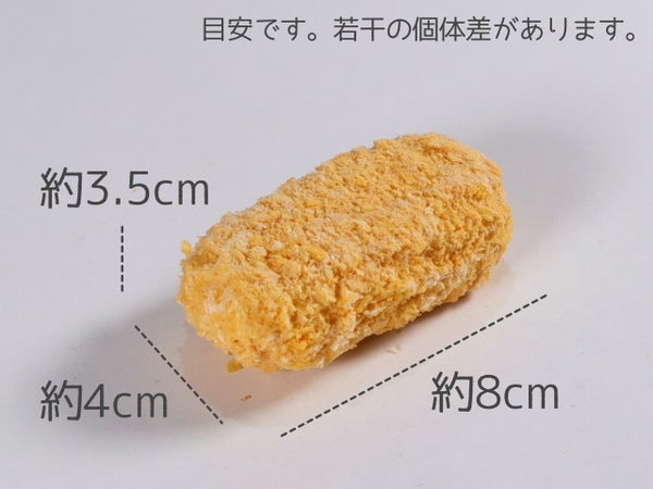 大きな約70g、約8×4×3.5cm。かに8%使用したあまみのあるホワイトソースがたっぷり味わえます。