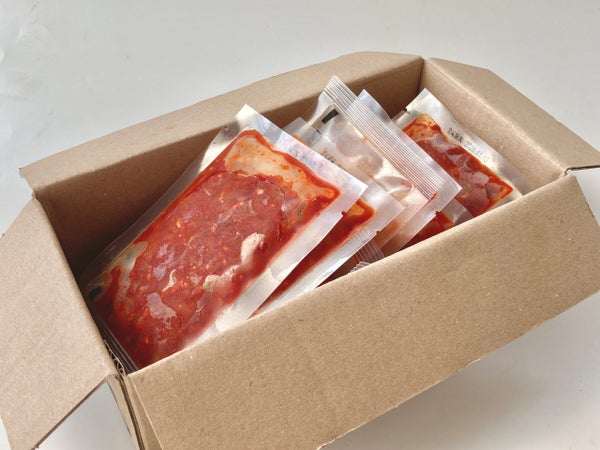一般に、小袋商品は充填機械の都合で細かく刻んだものが多いですが、このチャンジャは噛み応えが楽しめる粗刻みのタラ胃がたっぷり入っています。