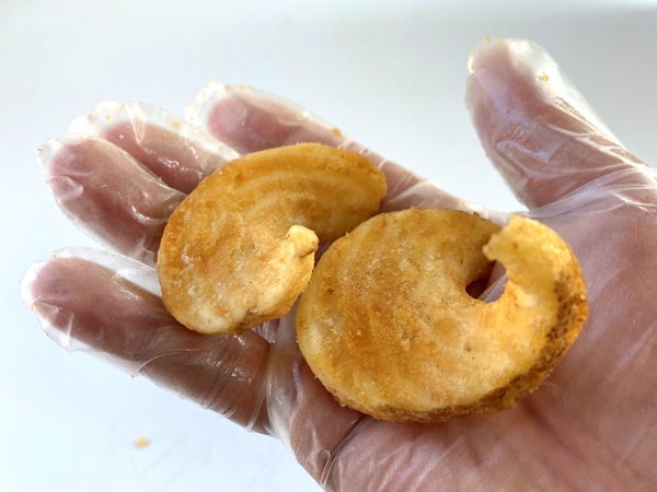 ひねりとらせんが特徴的な大ぶりカット。サクサク感が続くビアバッターコーティング。