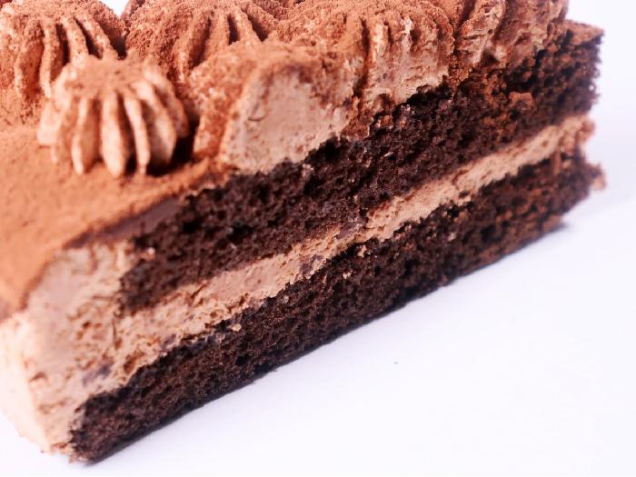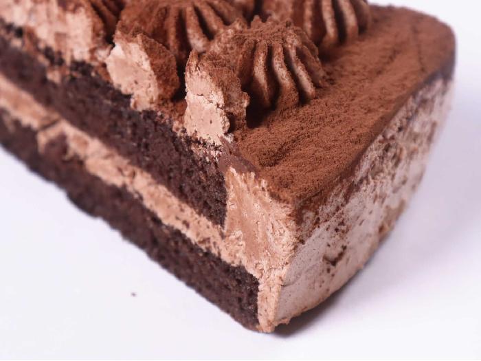 ココアスポンジとチョコホイップで3層に仕上げ、自家製のチョコガナッシュを合わせました。スポンジ・ホイップ・ガナッシュとチョコづくしですが、しつこくない軽い味わいです。