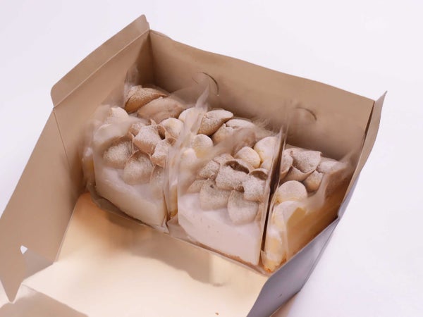 ホイップにマロンあんと渋皮栗ペーストの2種類を使用した贅沢なケーキです。スポンジの間にもマロンホイップをサンドしているので、栗の風味が広がります。