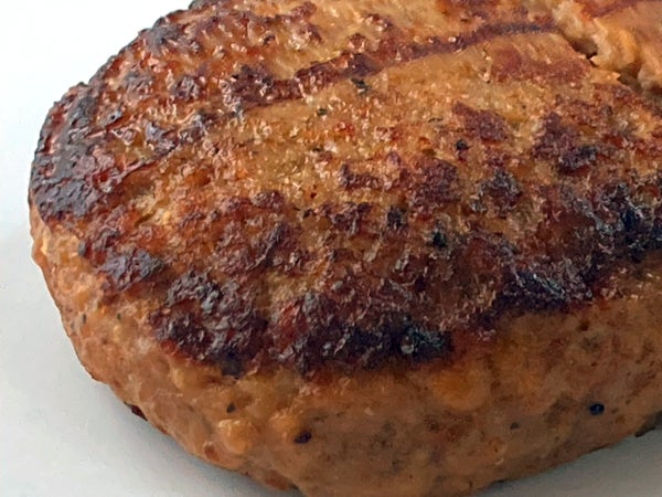 - ビーフ100%の肉々しさがありながら固くない、しなやかな焼き上がりになるように、肉の挽き方や成型の仕方にもこだわって製造されています。肉を切ったとき、口に入れたときに肉汁が感じられるように仕上げました。