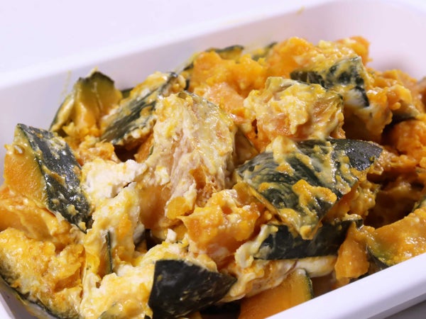 カボチャの形が残ったままなのに、皮は柔らかく、べとべとしていないので安心しました。味は少し中途半端すぎるので、もう少し甘味、塩味、マヨネーズ味などに絞りインパクトがあってもいいかと思いました。私は干しブドウを入れてみました。
