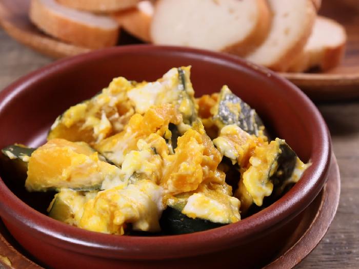 栗かぼちゃの形を残しているところと、クリームチーズをからめてあるところが特徴です。