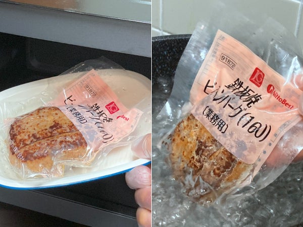 冷凍のまま、約26分間湯煎してください。または、袋に穴をあけ電子レンジで約4分20秒(500W)加熱してください。