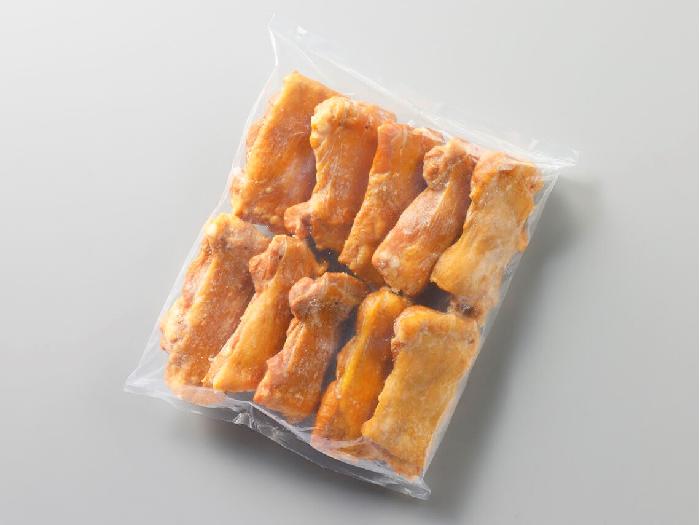 鶏肉(もも)、でん粉、食塩、砂糖、粉末状植物性たん白、植物油脂、こしょう、米粉/ポリリン酸Na、調味料(アミノ酸)、加工でん粉、酸化防止剤(ビタミンC)、発色剤(亜硝酸Na)、(一部に小麦・卵・乳成分・大豆・鶏肉を含む)