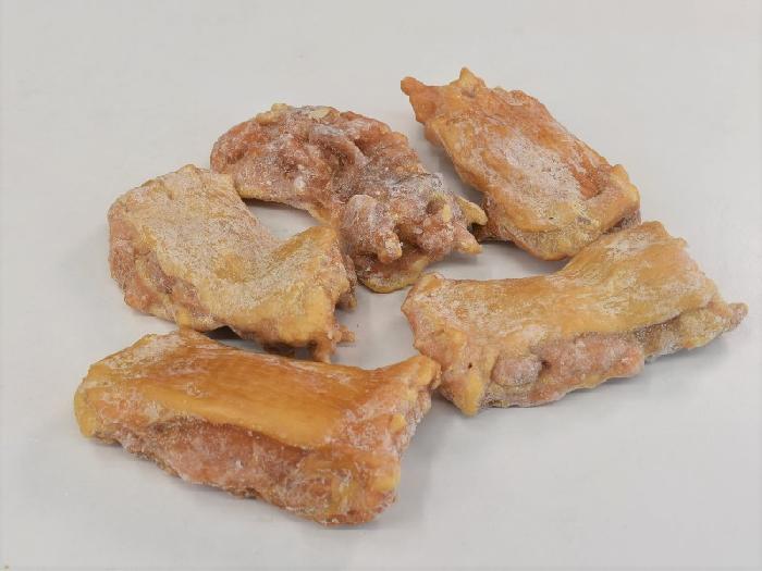 若鶏のもも肉を使用した燻製チキンです。リンゴチップを使用し、1枚1枚吊るして丁寧に燻しました。豊かな燻製の香りでオードブルなどに最適な一品です。