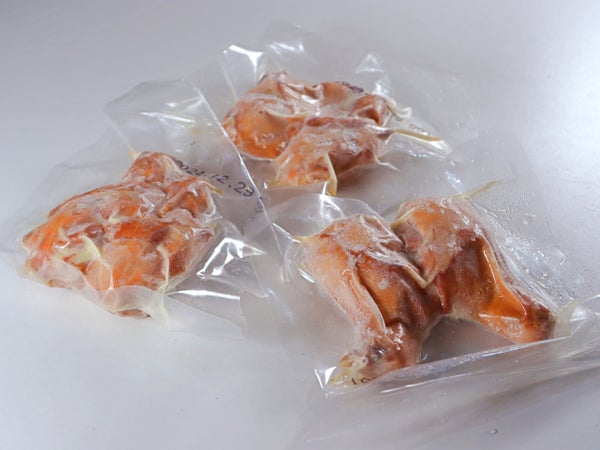 ドラムチキン(骨付き)を加圧加熱して柔らかく仕上げ2本づつで1袋に詰めました。箸やスプーンで骨から肉を簡単にほぐせます。味付けは下味程度で抑えてあるので、お好みのタレ・ソースで仕上げてください。またカレーなどのトッピングにもおすすめです。2本ずつ小分け包装されており、湯煎調理にも便利な仕様です。