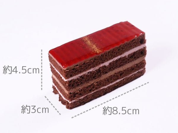 ラズベリーの爽やかな甘酸っぱさとビターなチョコが大人っぽい四角いケーキ。トランシェとは「切り分けたケーキ」というような意味。