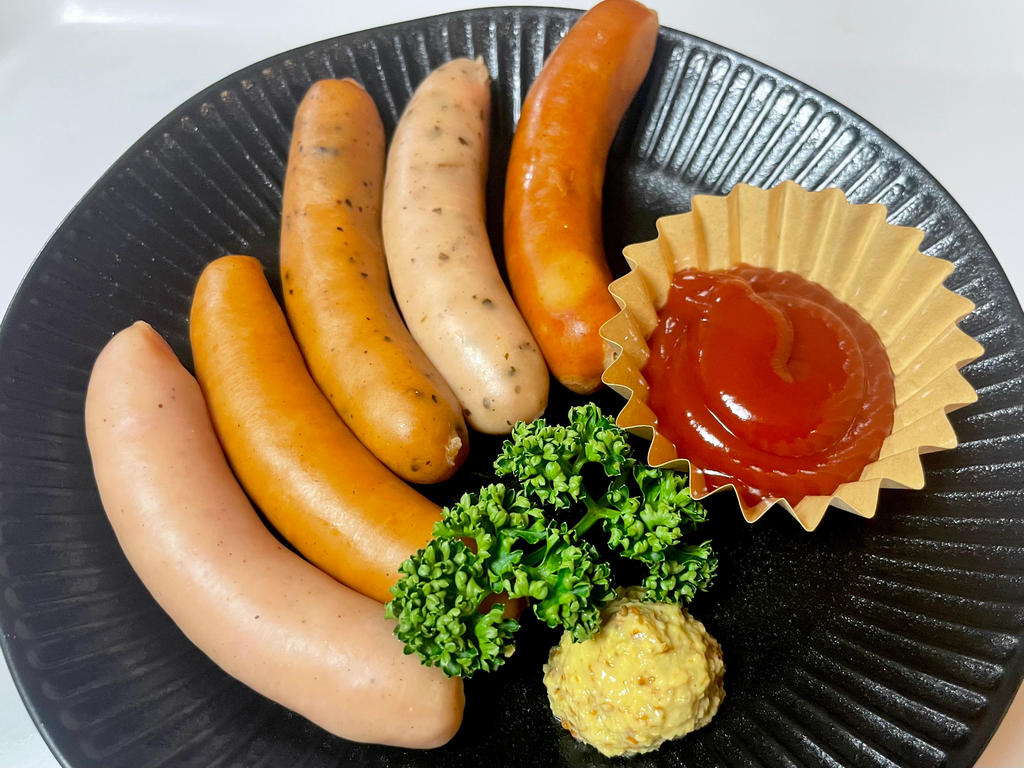 プレーン・ブラックペッパー・バジル・チョリソー・ガーリックの5種をアソートにしたバラエティウインナーです。袋のまま湯煎調理ができ、ロスの心配もありません。定番のソーセージ盛り合わせが手軽に提供できます。