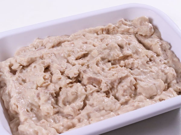 見えにくいですが、ツナフレークの食感以外に、たまねぎのしゃきしゃきした歯触りをしっかり感じることができます。