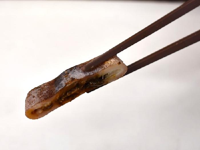 佐渡島で朝獲れたスルメイカを干して作っています。鮮度が良く、肝のおいしさが際立った逸品です。軽く炙り、食べやすいサイズにカットしてください。