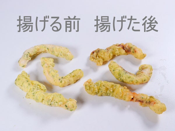 いかエキスパウダーで風味を強化し、あおさの香りをまとわせました。揚げ時間約2分半のスピード調理です。