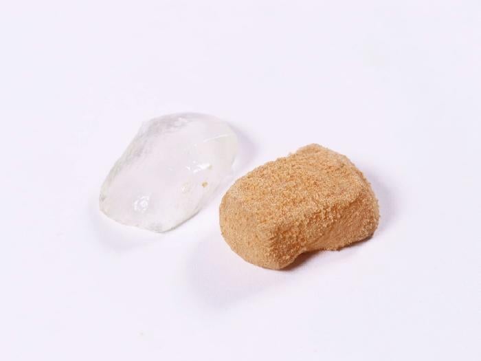 やや小さめで甘味の盛り合わせに使いやすいサイズ感です。適度にいびつで自然な形をしたわらび餅です。
